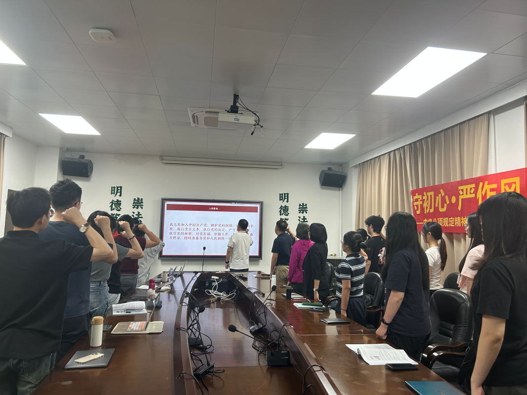 之后,全体党员围绕“迎‘七一’之‘我能为党做什么’” 展开热烈研讨,结合自身学习和生活实际,分享对中央八项规定的理解与认识,以及在日常生活中的践行思路。博士研究生第一党支部的赵东苑同学、法律硕士研究生第四党支部的李文涛同学、本科生第三党支部的颜楚钧同学分别发言,提出在进行科研活动时,要抵制学术腐败,规范使用科研经费,同时注重学术实效,拒绝“注水”研究和“跟风”课题,杜绝用AI写作论文,以深耕细作的态度回应时代需求;在学生工作中,要反对形式主义,切实为同学解决问题;在日常生活中,以“求真务实、简约高效”的作风为校园风气注入正能量,让青春因纪律坚守而更有意义。党员们的交流感悟,展现了以行动践行中央八项规定精神、让作风建设落地生根的决心。