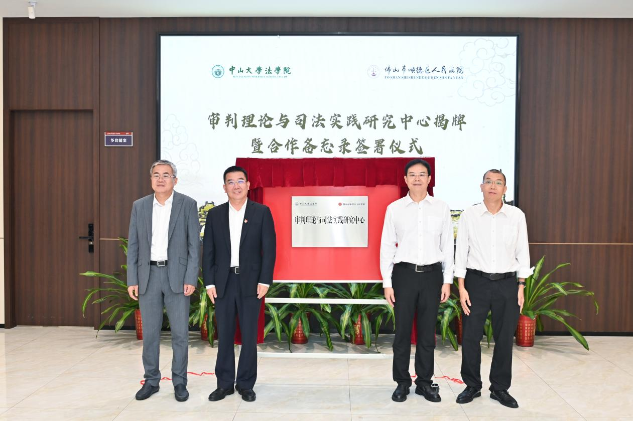 仪式上,法学院与顺德法院共同为审判理论与司法实践研究中心揭牌,并签署合作备忘录。作为共建平台,该中心将聚焦科研课题合作、案例研讨、人才培养及实习实践等领域,致力于构建常态化、机制化的协同发展模式。双方将在科研合作、资源共享、专家互聘、实务交流等方面深入协作,共同探索法学教育与审判实践互促共进的新路径,通过搭建多元化交流机制,推动法官与教研人员双向互动,促进司法智慧与学术成果的有效转化。