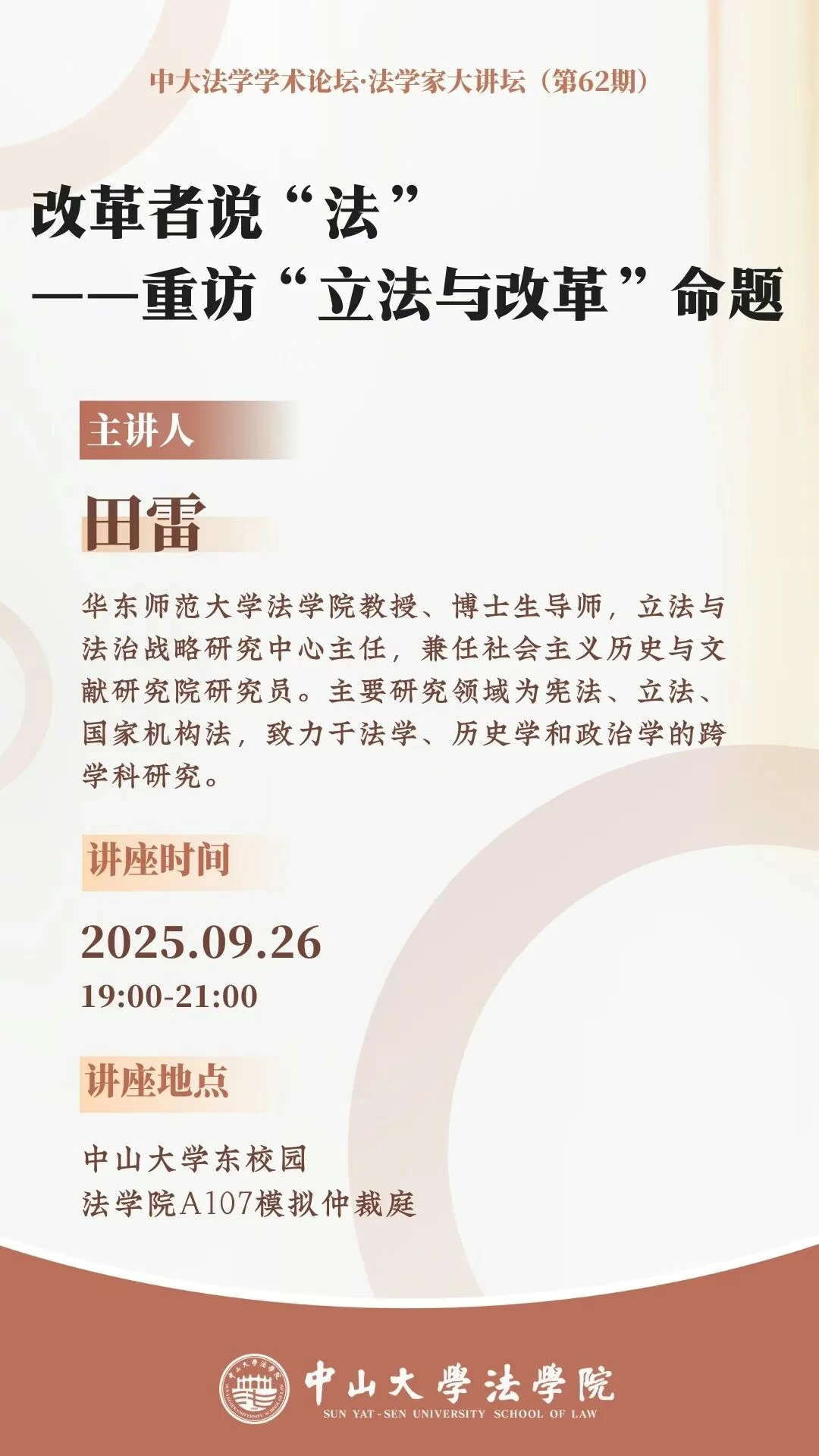 中大法学学术论坛 · 法学家大讲坛(第62期):改革者说“法”——重访“立法与改革”命题