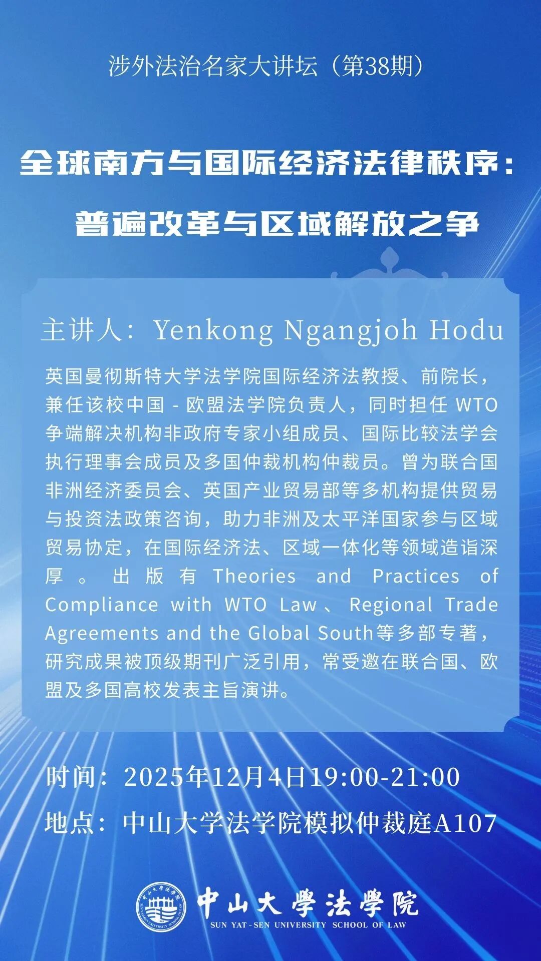 涉外法治名家大讲坛(第38期):全球南方与国际经济法律秩序:普遍改革与区域解放之争