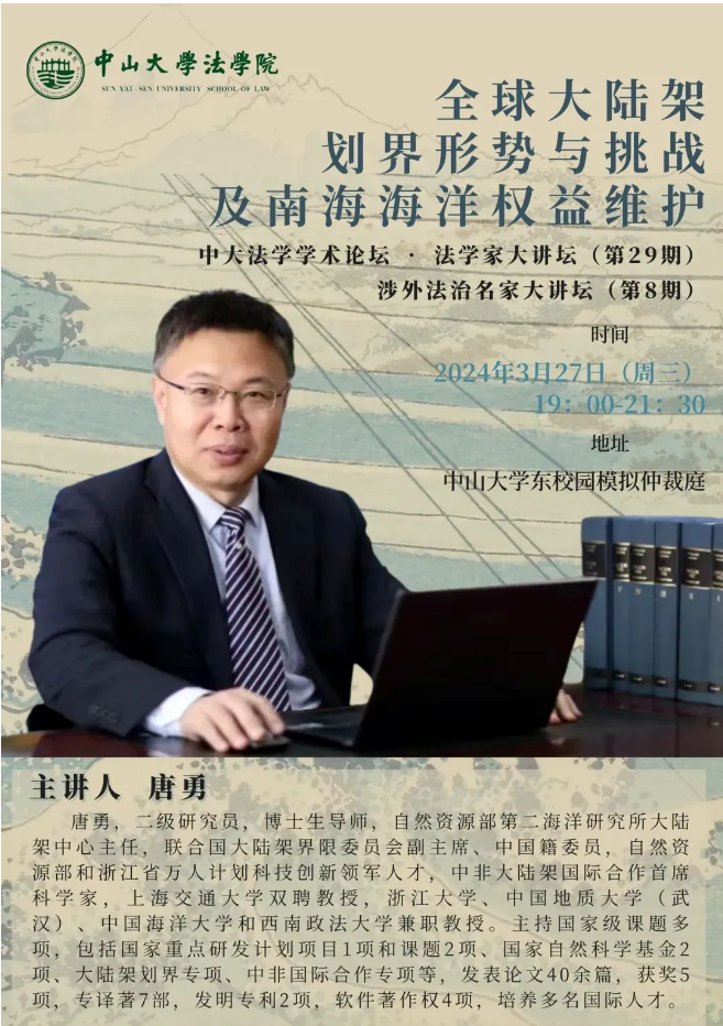 【学术论坛预告】全球大陆架划界形势与挑战及南海海洋权益维护(中大法学学术论坛 • 法学家大讲坛第29期 涉外法治名家大讲坛第8期)