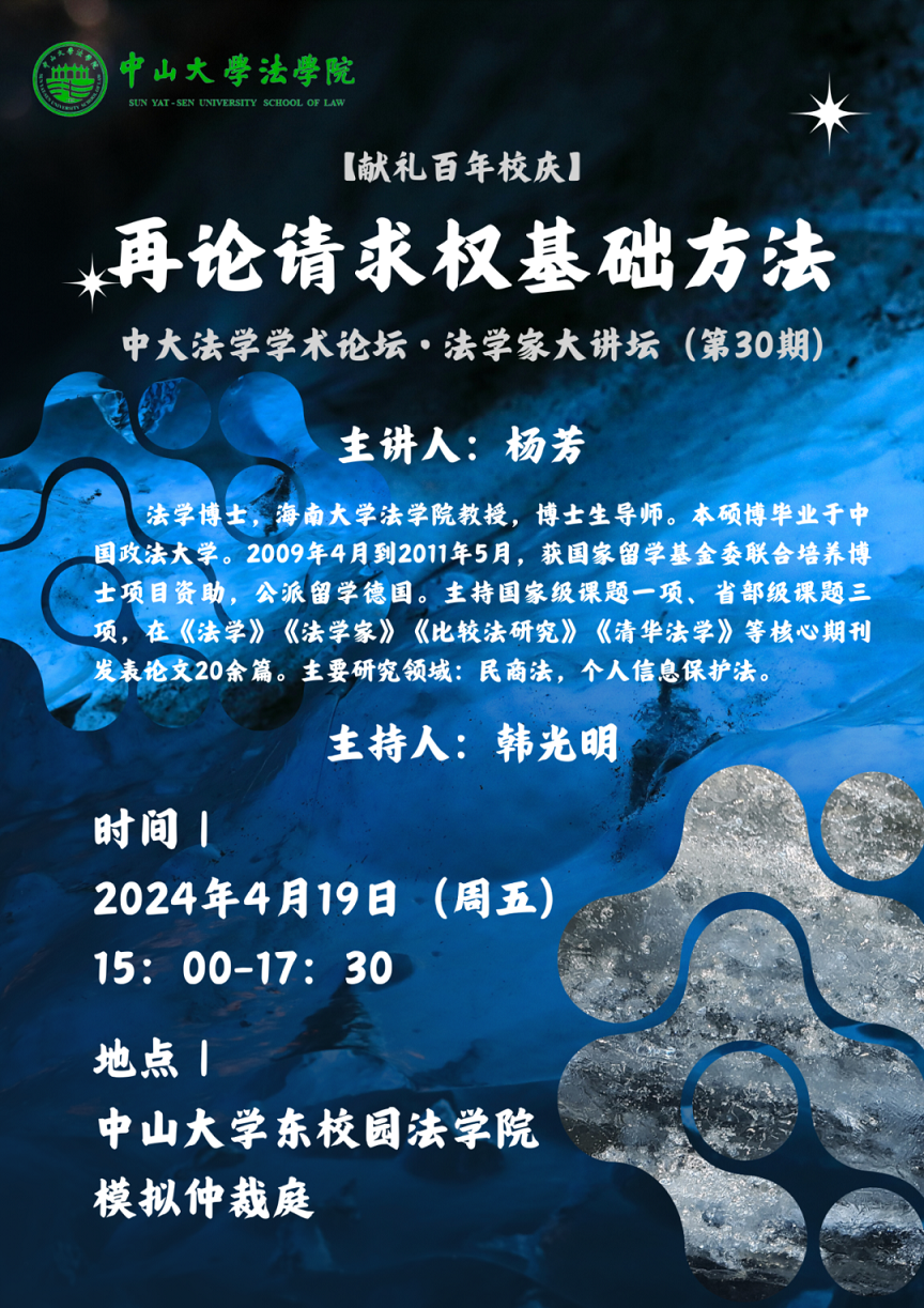 【学术论坛预告】中大法学学术论坛 • 法学家大讲坛(第30期) ——再论请求权基础方法
