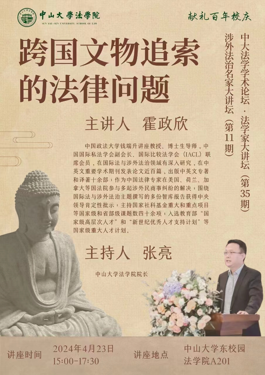 【学术论坛预告】中大法学学术论坛 • 法学家大讲坛第35期、涉外法治名家大讲坛第11期——跨国文物追索的法律问题