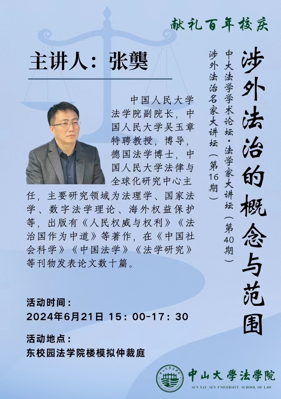 【学术论坛预告】中大法学学术论坛 • 法学家大讲坛第40期、涉外法治名家大讲坛第16期——涉外法治的概念与范围