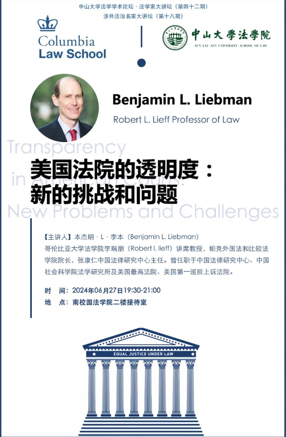 【学术论坛预告】中大法学学术论坛 • 法学家大讲坛(第42期)、 涉外法治名家大讲坛(第18期)——美国法院的透明度:新的挑战和问题