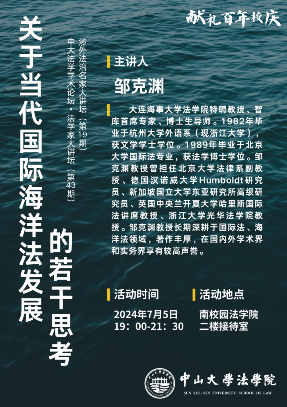 【学术论坛预告】中大法学学术论坛 • 法学家大讲坛(第43期)、 涉外法治名家大讲坛(第19期)——关于当代国际海洋法发展的若干思考
