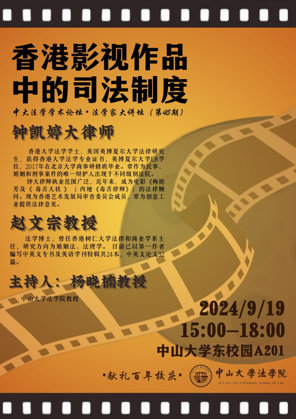 【学术论坛预告】中大法学学术论坛 • 法学家大讲坛(第45期)——香港影视作品中的司法制度