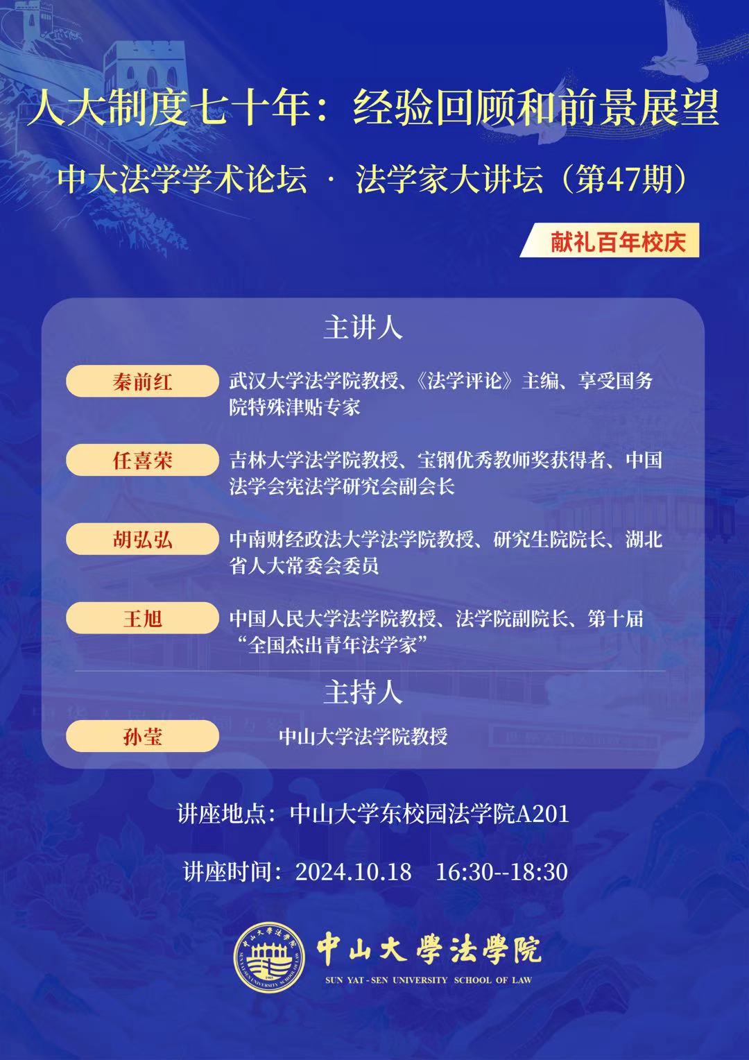 中大法学学术论坛 • 法学家大讲坛(第47期)—— 人大制度七十年:经验回顾和前景展望