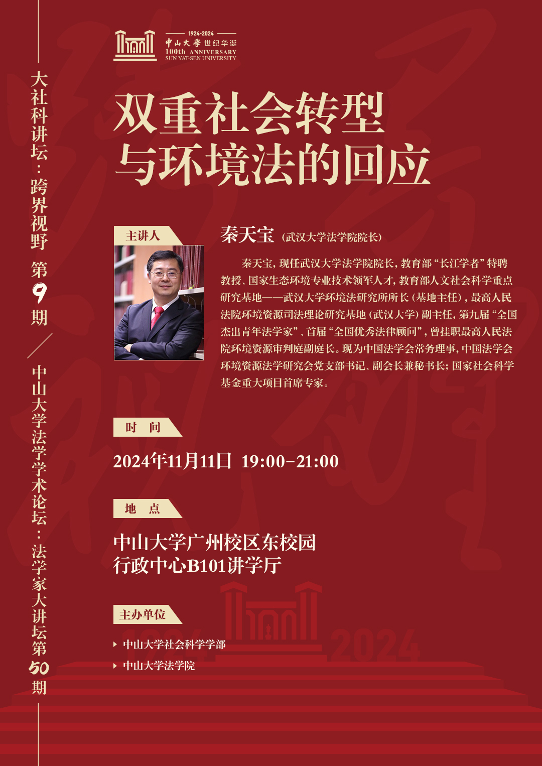 中大法学学术论坛 • 法学家大讲坛(第50期)——双重社会转型与环境法的回应