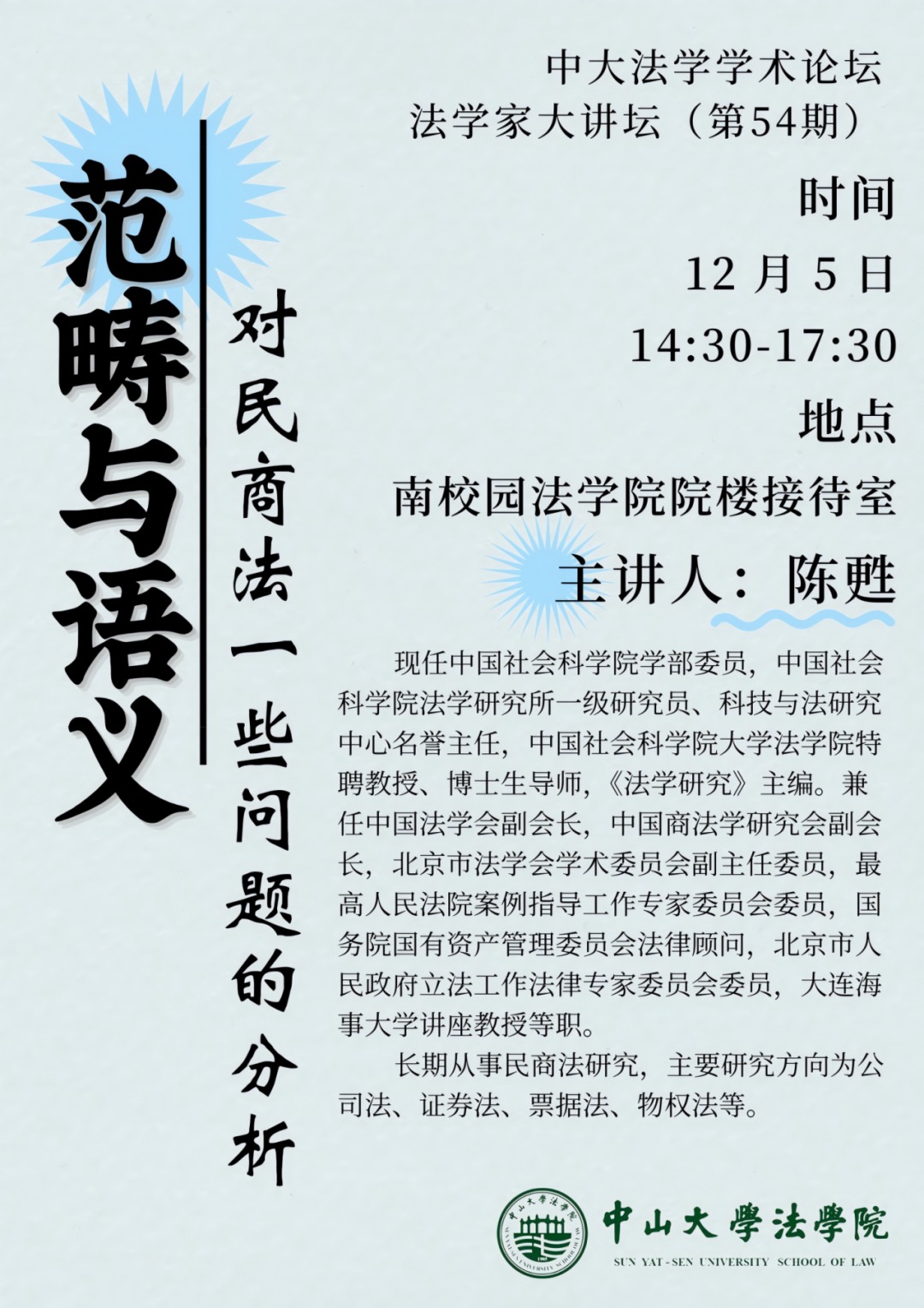 中大法学学术论坛·法学家大讲坛(第54期)——范畴与语义:对民商法一些问题的分析