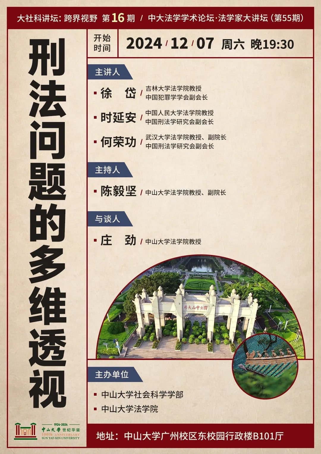 中大法学学术论坛·法学家大讲坛(第55期)——刑法问题的多维透视
