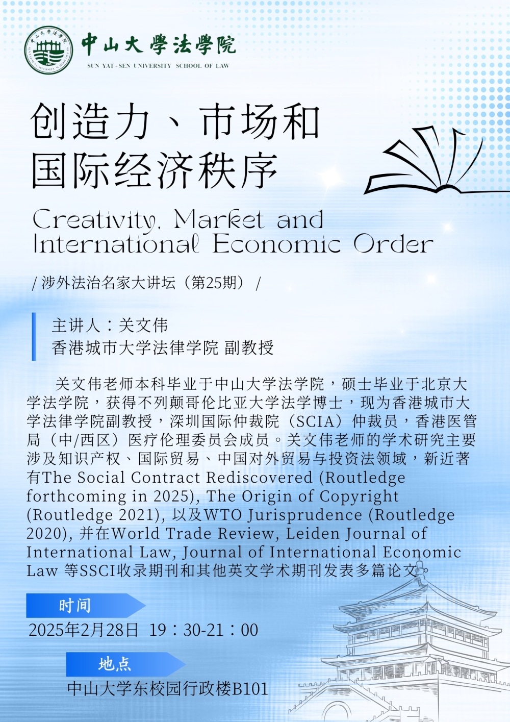 涉外法治名家大讲坛(第25期):创造力、市场和国际经济秩序
