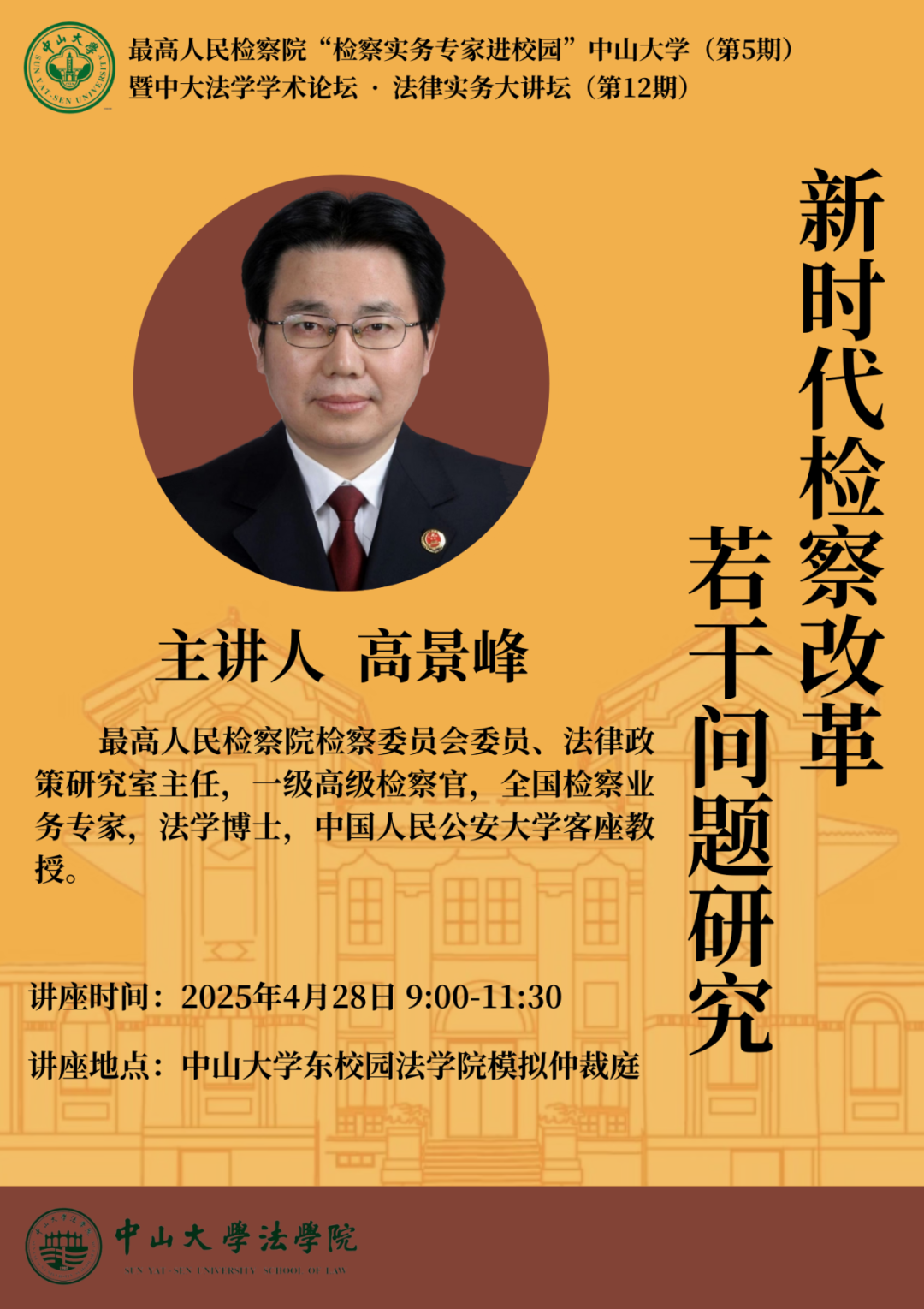 最高人民检察院“检察实务专家进校园”304永利集团(第5期)、中大法学学术论坛·法律实务大讲坛(第12期)——新时代检察改革若干问题研究