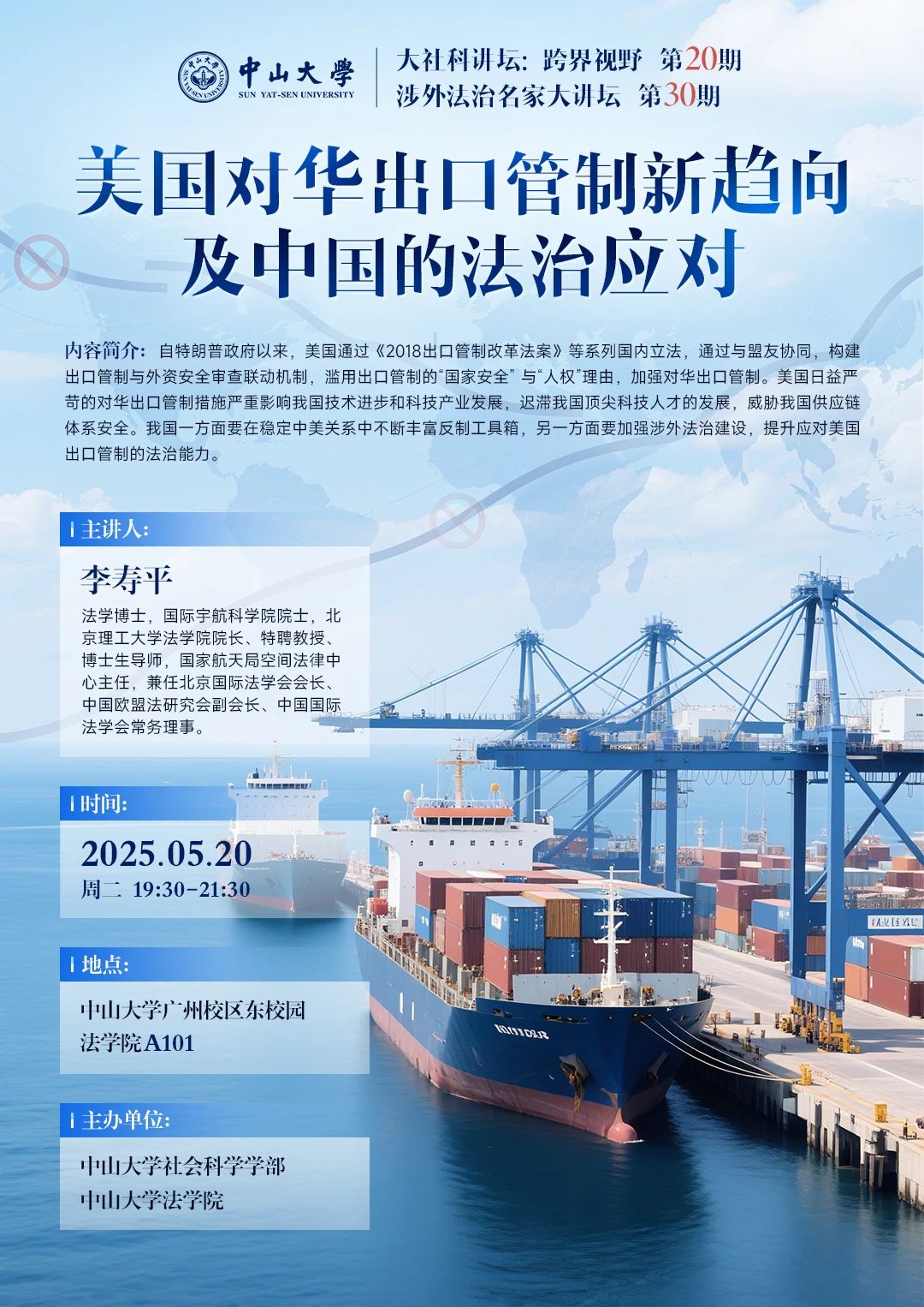 大社科讲坛(第20期)、涉外法治名家大讲坛(第30期)——美国对华出口管制新趋向及中国的法治应对