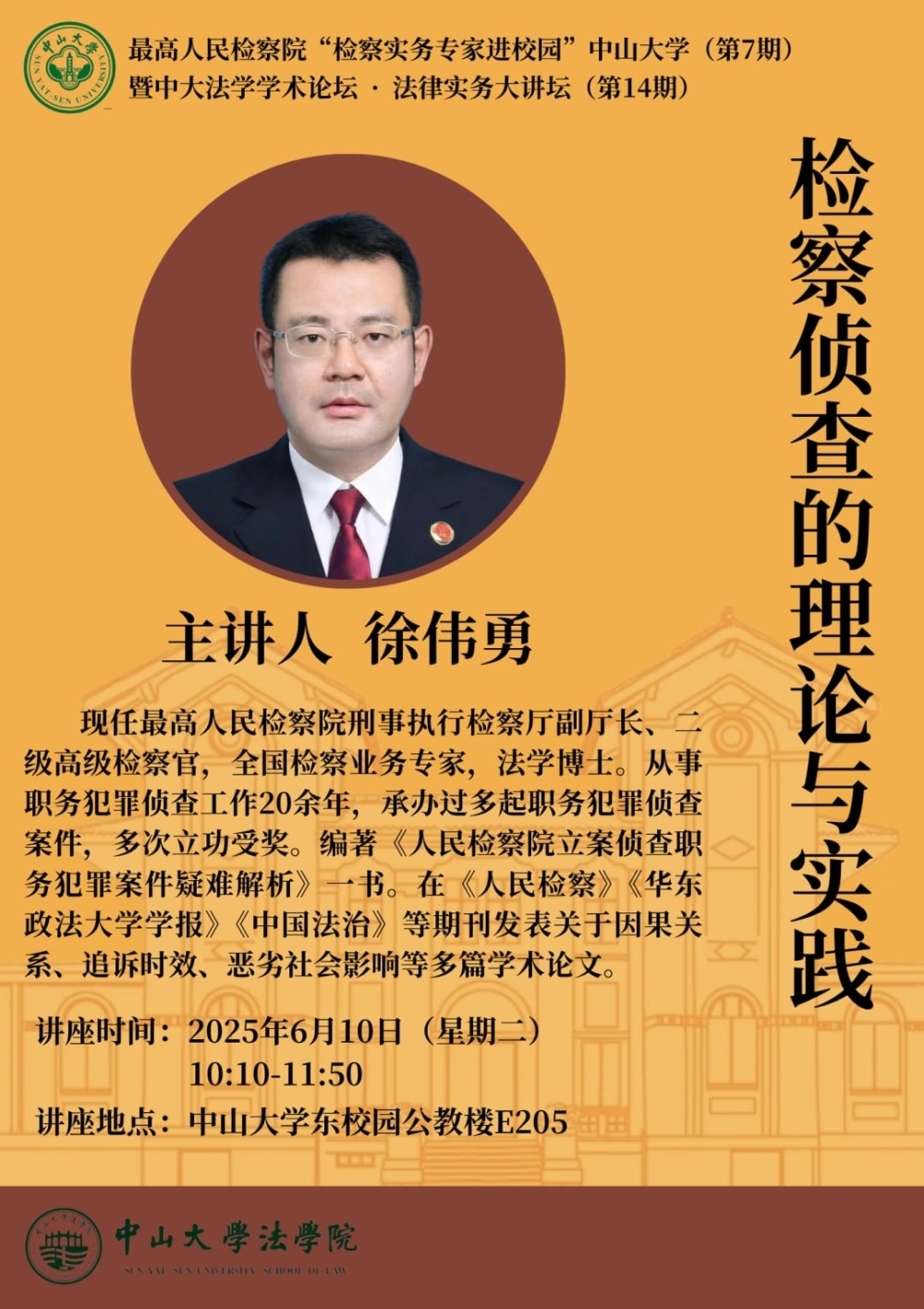 最高人民检察院“检察实务专家进校园”304永利集团(第7期)、中大法学学术论坛·法律实务大讲坛(第14期)——检察侦查的理论与实践